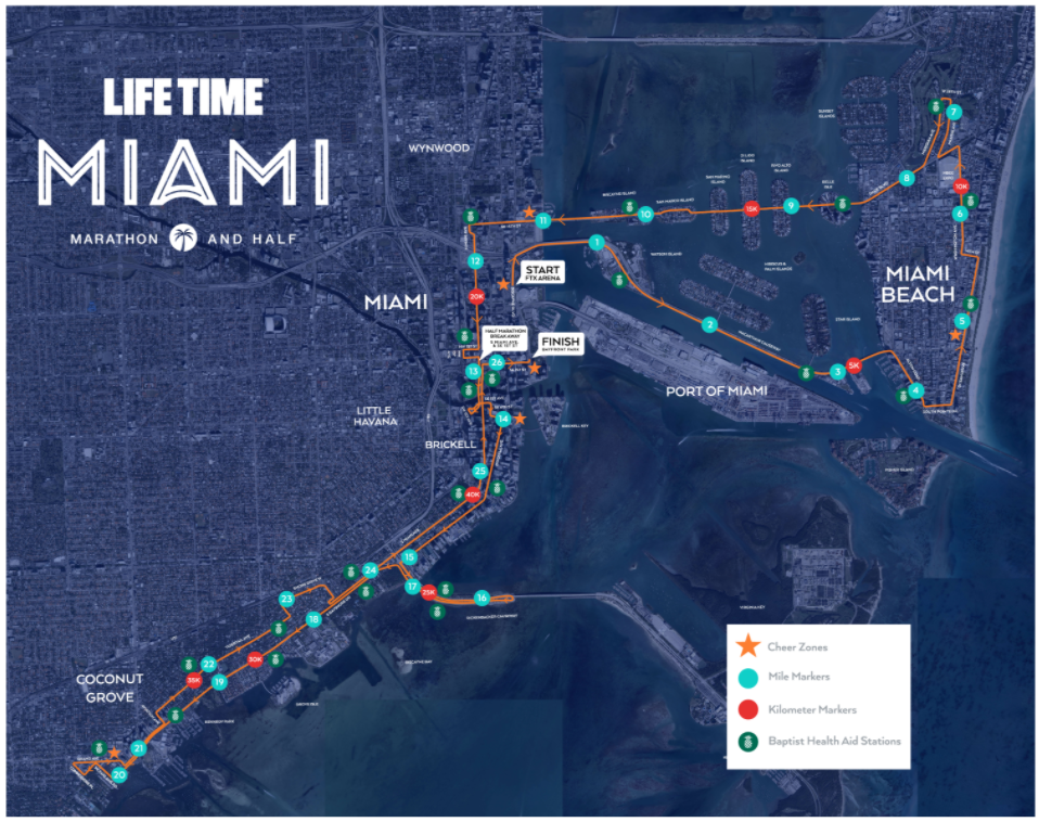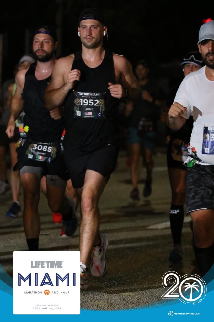 The course was well designed. The first part of the race is in the dark along the bridge from Miami to South Beach. The bridge is over three miles long, and the port is right there, so you are running along a line of cruise ships. It was surreal. Dead silent. Thousands of runners in the dark, with beautifully lit, enormous, empty ships next to us.