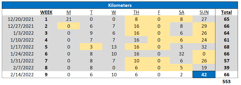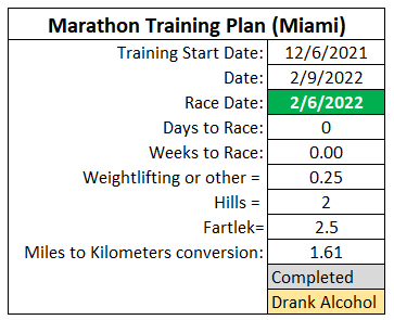 The race was Sunday, 2/6/22, which was 9 weeks away.