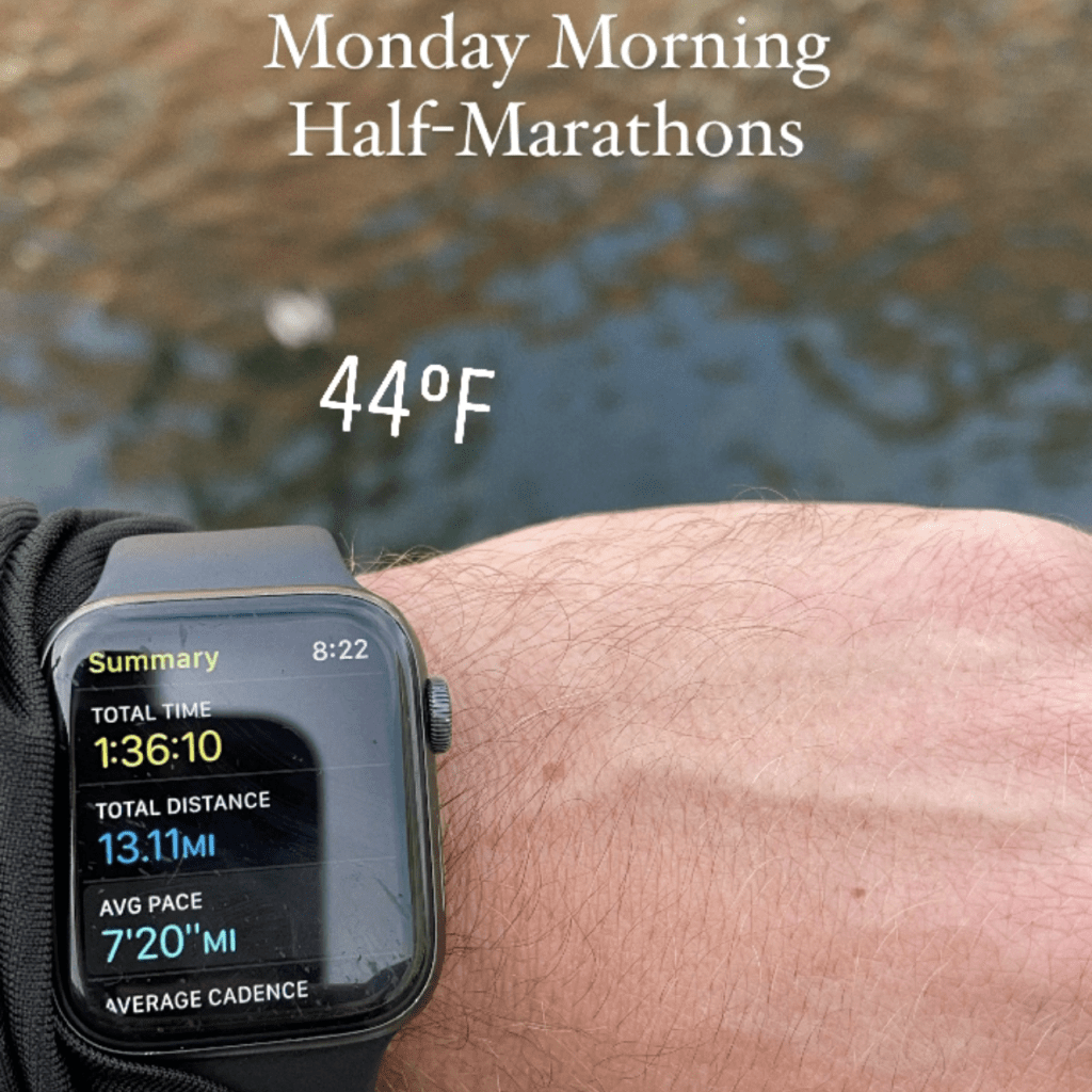 One day in November, my legs were feeling good, so on a Sunday night I decided to run a half-marathon (13.1m) before work the next morning.