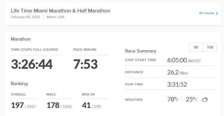 I looked up upcoming races, and Miami in February sounded nice (at first). It was full and I was 1,500 on the waitlist, so I had no expectation of getting in and considered the Ventura, California marathon in February, too.