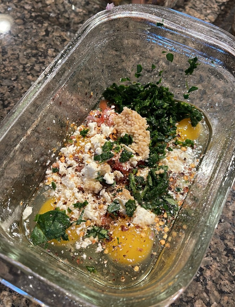- Combine ingredients in baking dish and bake for 25-30 minutes @ 375°F.