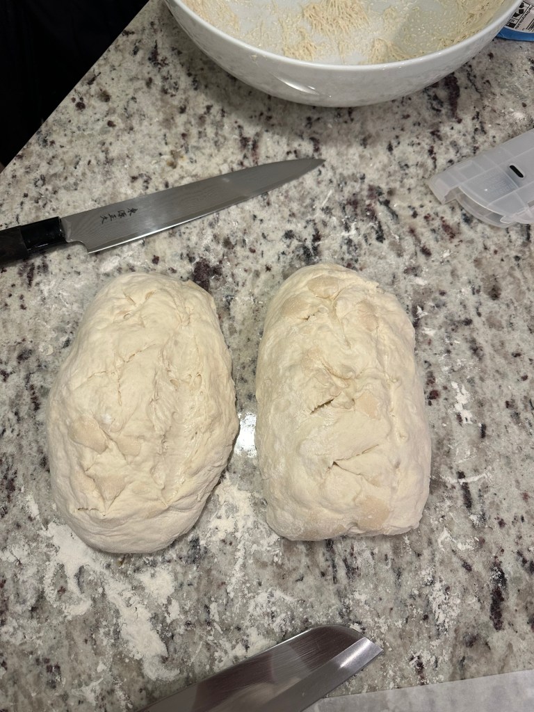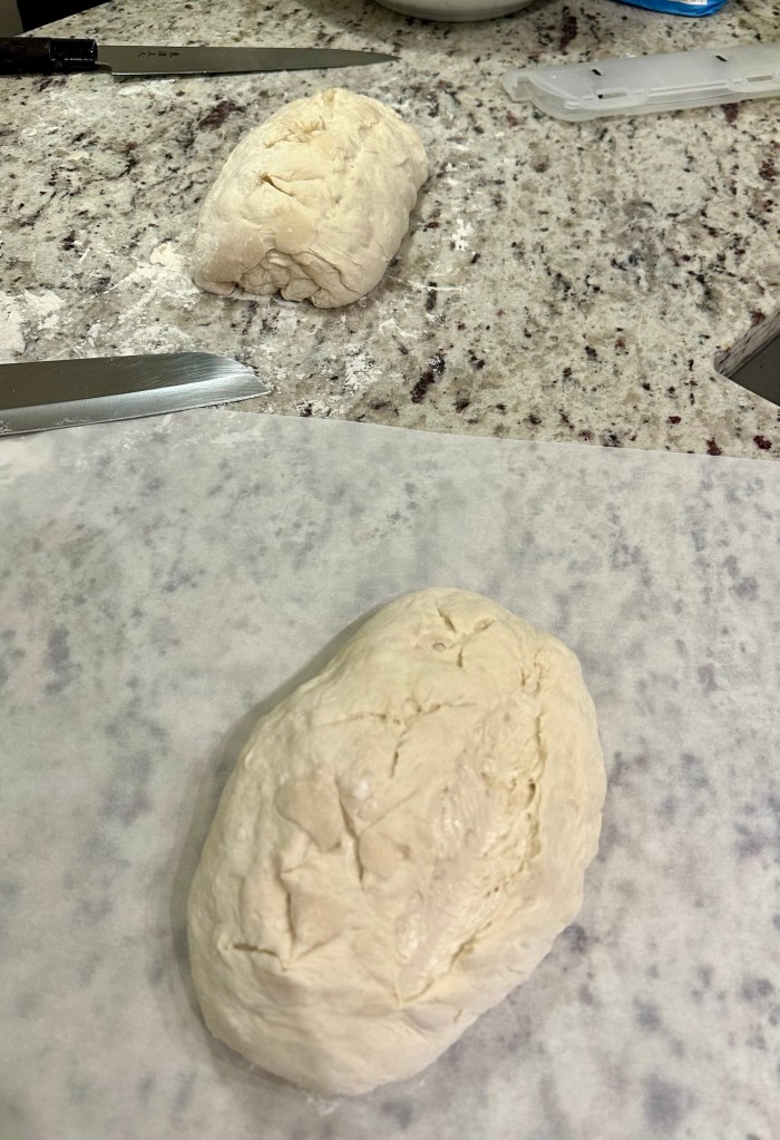 - Put the dough on the counter and cut it into two loaves.
